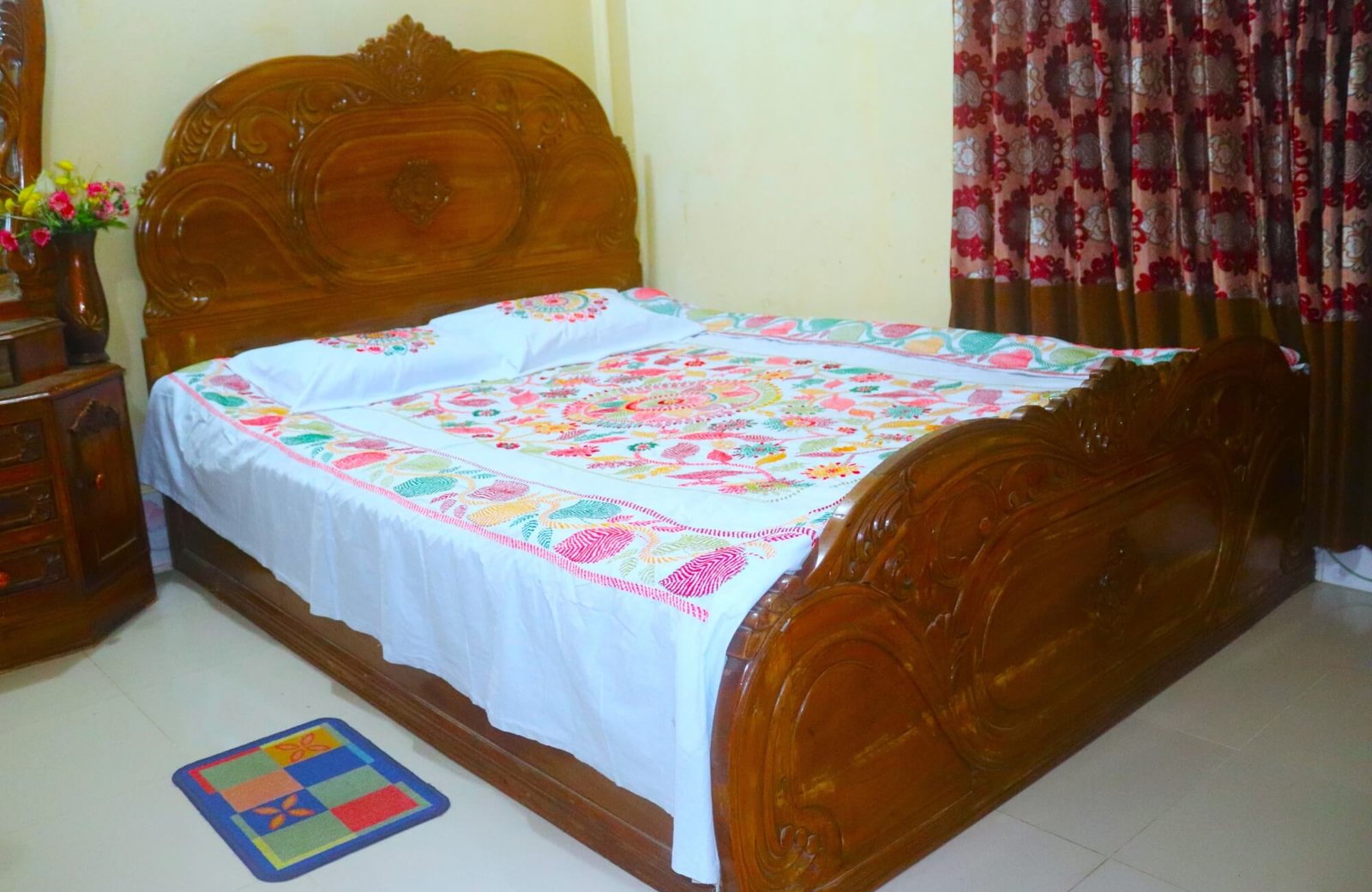 Enhance your bedroom decor with the White Nakshi Kantha Bed Cover with Pillow Cover set from Nakshi Bazar. Experience the beauty of handcrafted luxury and cultural heritage in every stitch.